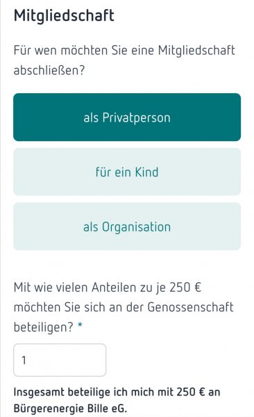 Seit Anfang dieses Jahres ist es erlaubt, einer Genossenschaft über ein digitales Formular beizutreten. Durch unsere Mitgliedschaft in der Dachorganisation Bürgerwerke können wir das jetzt auch unkompliziert anbieten. Für den Beitritt zur Bürgerenergie Bille eG einfach auf den Button klicken und Mitglied werden.